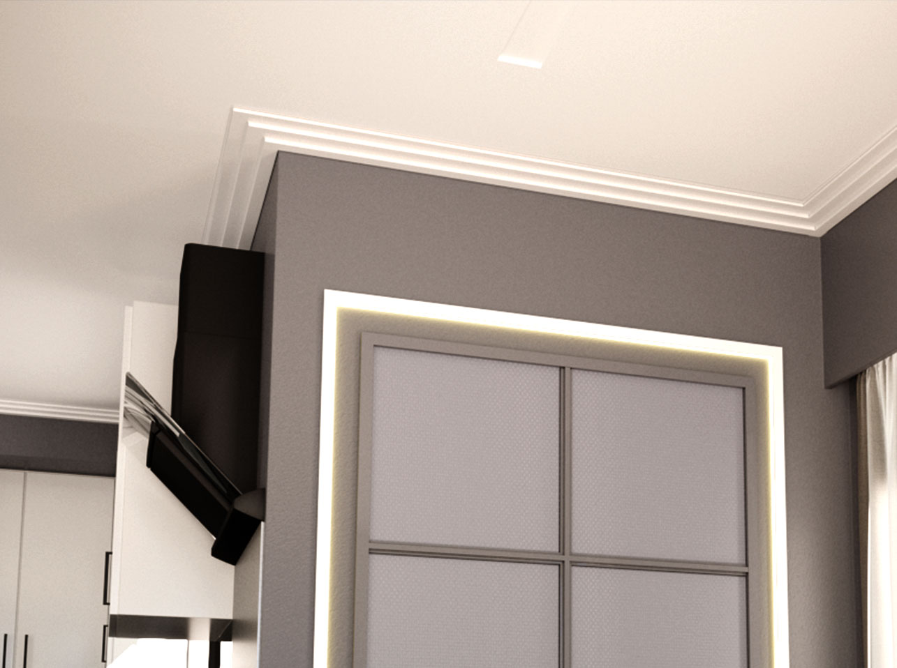 The UP233 profile is a versatile profile capable of providing a finish on the wall, whether near the ceiling, on the ceiling, or functioning as a frieze. With a modern design, it adapts to any decorative environment.