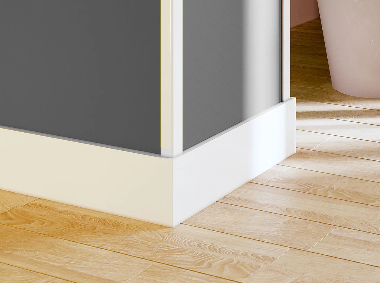 The UP217 skirting board is the ideal choice for those seeking impact-resistant, modern, and straight skirting. Perfect for those who want to conceal skirting boards, known as cover skirting, allowing the renovation of spaces without the need to remove existing skirting boards (old ones). In this case, the UP217 skirting board should completely cover the existing one (it should be taller).